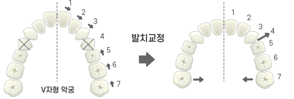 비발치 교정(어금니 후방이동, 치간삭제, 악궁확장 장치)을 하실 수 있습니다.
