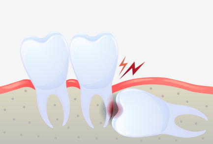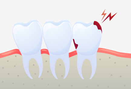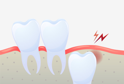 사랑니와 어금니 사이에 음식물이 끼게 되어 충치 및 치주염 발생의 위험율이 높아집니다.